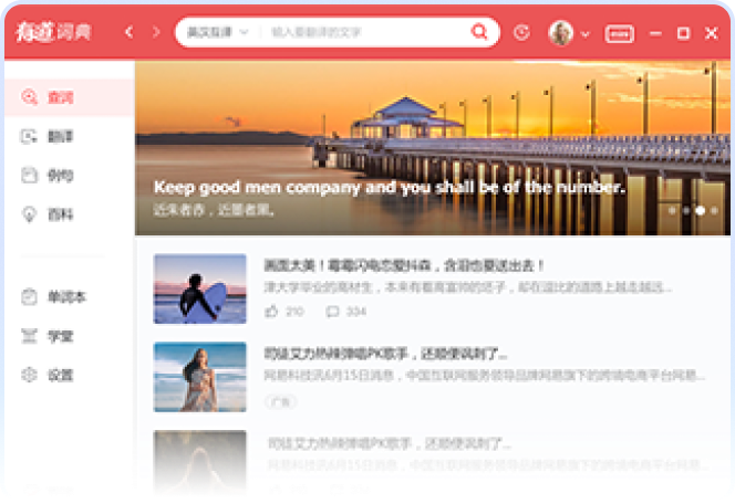 红色视觉主题,收录牛津、韦氏、柯林斯等多部权威词典,支持100+种语言与中文的互译